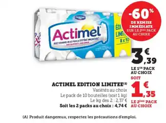 Le prix de l'offre ACTIMEL Edition limitee se trouve également en haut de la page, ainsi que la date à laquelle l'offre est disponible. Vous pouvez également vérifier les prix dans le Catalogue Super U actuel ou sur le site Internet de Super U. Les offres vous permettent d'acheter les produits Super U au prix le plus bas.