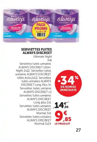 ALWAYS DISCREET Serviettes fuites offres et promotions en ligne chez Super U