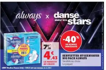 ALWAYS Serviettes hygieniques big pack : offres et promos Super U à découvrir
