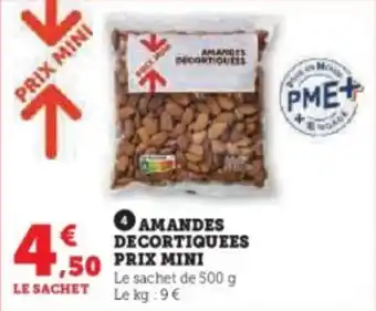 Actuellement en offre chez Super U : Amandes decortiquees prix mini ✅ Valable du 10-02 au 22-02.