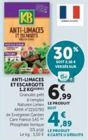 Le prix de l'offre Anti-limaces et escargots se trouve également en haut de la page, ainsi que la date à laquelle l'offre est disponible. Vous pouvez également vérifier les prix dans le Catalogue Super U actuel ou sur le site Internet de Super U. Les offres vous permettent d'acheter les produits Super U au prix le plus bas.