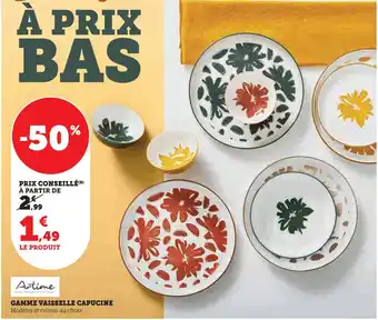 Y a-t-il une promotion sur Artime gamme vaisselle capucine la semaine prochaine chez Super U ?