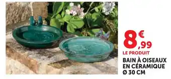 Actuellement en offre chez Super U : Bain à oiseaux en céramique ø 30 cm ✅ Valable du 24-02 au 22-03.