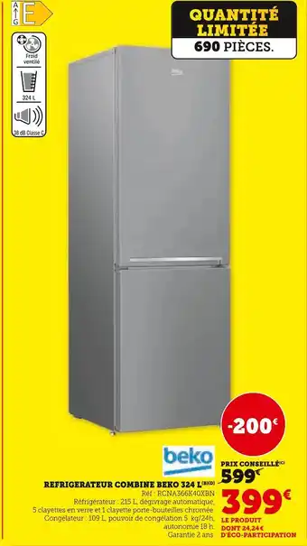 Actuellement en offre chez Super U : Beko réfrigérateur combiné 324 l ✅ Valable du 30-12 au 11-01.