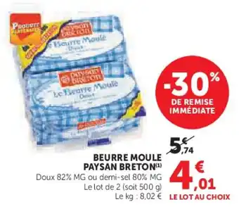 Actuellement en offre chez Super U : Beurre moule paysan breton ✅ Valable du 10-03 au 22-03.
