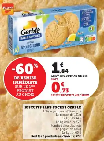 Le prix de l'offre Biscuits sans sucres gerble se trouve également en haut de la page, ainsi que la date à laquelle l'offre est disponible. Vous pouvez également vérifier les prix dans le Catalogue Super U actuel ou sur le site Internet de Super U. Les offres vous permettent d'acheter les produits Super U au prix le plus bas.