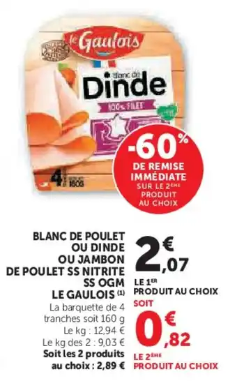 Offre Blanc de poulet ou dinde ou jambon de poulet ss nitrite ss ogm le gaulois chez Super U