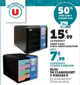 Actuellement en offre chez Super U : Bloc de classement 4 tiroirs u ✅ Valable du 6-01 au 18-01.