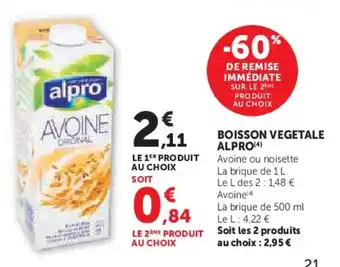 Boisson vegetale alpro offres et promotions en ligne chez Super U