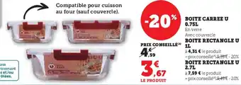 Le prix de l'offre Boite carree u se trouve également en haut de la page, ainsi que la date à laquelle l'offre est disponible. Vous pouvez également vérifier les prix dans le Catalogue Super U actuel ou sur le site Internet de Super U. Les offres vous permettent d'acheter les produits Super U au prix le plus bas.