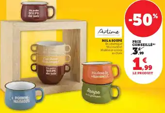 L'offre est disponible dans plusieurs magasins, vérifiez tous les produits pour obtenir le Bol a soupe le moins cher. Si vous souhaitez savoir si l'article est en vente avec une plus grosse remise dans un autre magasin, consultez la catégorie 'Supermarché'. Ces offres pourraient aussi vous intéresser : Artime bol a soupe, ARTIME Bol a soupe & Artime bol à soupe.