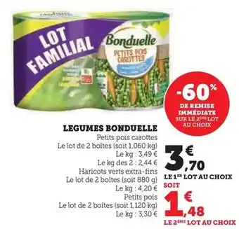 Le prix de l'offre Bonduelle - legumes se trouve également en haut de la page, ainsi que la date à laquelle l'offre est disponible. Vous pouvez également vérifier les prix dans le Catalogue Super U actuel ou sur le site Internet de Super U. Les offres vous permettent d'acheter les produits Super U au prix le plus bas.