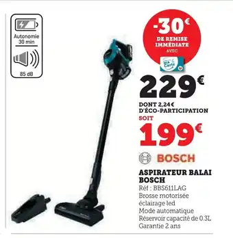 Actuellement en offre chez Super U : BOSCH Aspirateur balai ✅ Valable du 20-01 au 8-02.