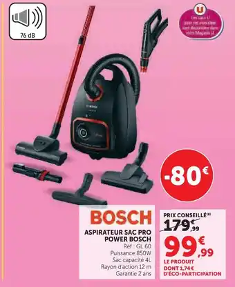 Actuellement en offre chez Super U : Bosch aspirateur sac pro power ✅ Valable du 24-02 au 8-03.