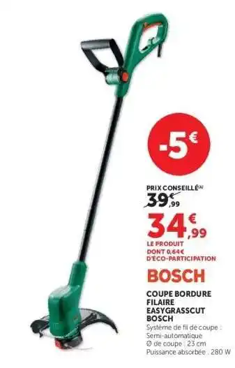 Offre BOSCH COUPE BORDURE FILAIRE EASYGRASSCUT chez Super U