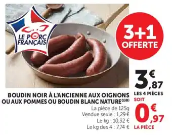 Boudin noir à l'ancienne aux oignons ou aux pommes ou boudin blanc nature : offres et promos Super U à découvrir