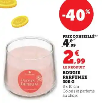 Le prix de l'offre Bougie parfumee se trouve également en haut de la page, ainsi que la date à laquelle l'offre est disponible. Vous pouvez également vérifier les prix dans le Catalogue Super U actuel ou sur le site Internet de Super U. Les offres vous permettent d'acheter les produits Super U au prix le plus bas.
