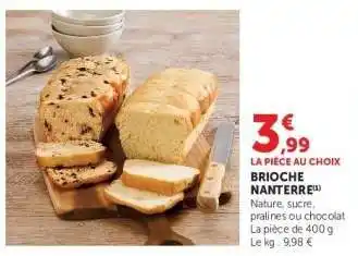 Le prix de l'offre Brioche Nanterre se trouve également en haut de la page, ainsi que la date à laquelle l'offre est disponible. Vous pouvez également vérifier les prix dans le Catalogue Super U actuel ou sur le site Internet de Super U. Les offres vous permettent d'acheter les produits Super U au prix le plus bas.