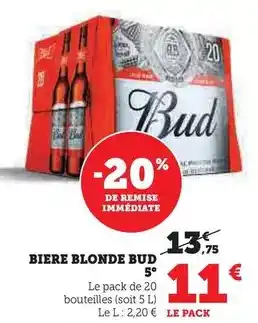 Actuellement en offre chez Super U : Bud - biere blonde 5° ✅ Valable du 20-01 au 1-02.
