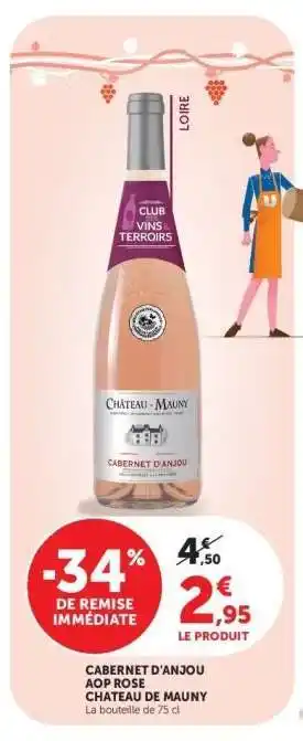 Actuellement en offre chez Super U : Cabernet d'Anjou AOP Rosé Chateau de Mauny ✅ Valable du 28-04 au 10-05.