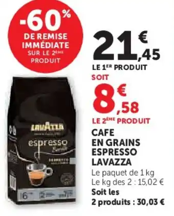 Cafe en grains espresso lavazza : offres et promos Super U à découvrir