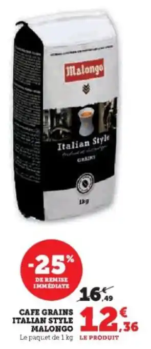 Cafe grains italian style malongo : offres et promos Super U à découvrir
