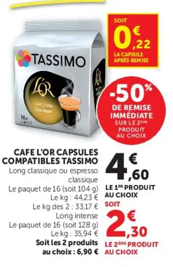 Offre CAFE L'OR CAPSULES COMPATIBLES TASSIMO SUR LE 2 chez Super U