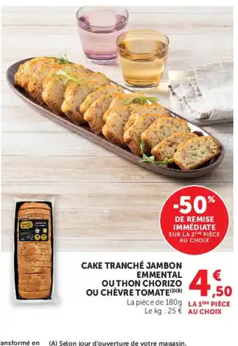 Offre Cake tranché jambon emmental ou thon chorizo ou chèvre tomate chez Super U