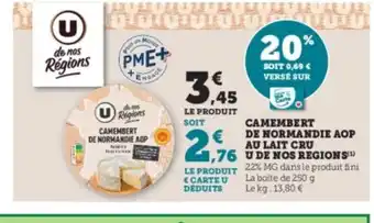 Offre Camembert de normandie aop au lait cru u de nos regions chez Super U