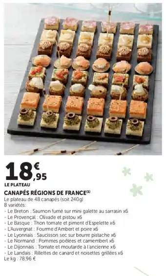 L'offre est disponible dans plusieurs magasins, vérifiez tous les produits pour obtenir le Canapés régions de france le moins cher. Si vous souhaitez savoir si l'article est en vente avec une plus grosse remise dans un autre magasin, consultez la catégorie 'Supermarché'. Ces offres pourraient aussi vous intéresser : Canapés gourmet, Canapés végétariens & Canapés traiteur.