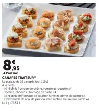 Le prix de l'offre Canapés traiteur se trouve également en haut de la page, ainsi que la date à laquelle l'offre est disponible. Vous pouvez également vérifier les prix dans le Catalogue Super U actuel ou sur le site Internet de Super U. Les offres vous permettent d'acheter les produits Super U au prix le plus bas.