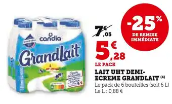 Actuellement en offre chez Super U : Candia grandlait lait uht demi-écrémé ✅ Valable du 27-12 au 4-01.