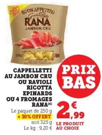 Actuellement en offre chez Super U : Cappelletti au jambon cru ou ravioli ricotta epinards ou 4 fromages rana ✅ Valable du 9-01 au 18-01.