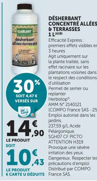 Carea désherbant concentré allées & terrasses : offres et promos Super U à découvrir