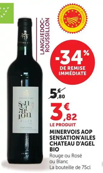 Actuellement en offre chez Super U : Chateau d'agel minervois aop sensation'ailes bio ✅ Valable du 28-04 au 10-05.