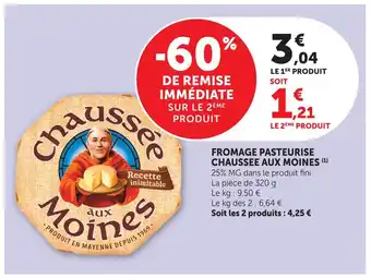 Actuellement en offre chez Super U : Chaussée aux moines fromage pasteurisé ✅ Valable du 28-04 au 10-05.