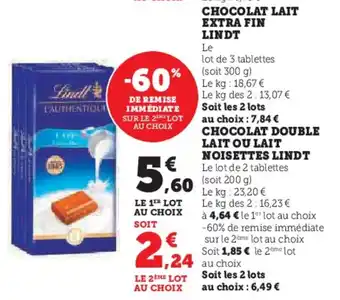 Chocolat lait extra fin lindt : offres et promos Super U à découvrir