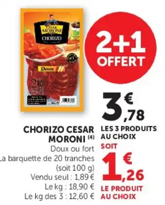 Offre CHORIZO CESAR LES 3 MORONI chez Super U