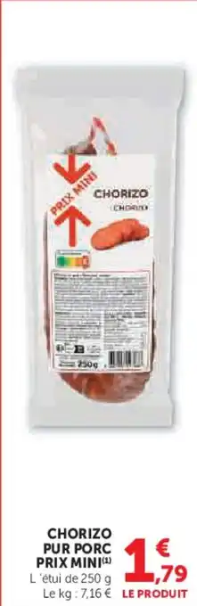 Actuellement en offre chez Super U : Chorizo pur porc prix mini ✅ Valable du 17-02 au 1-03.