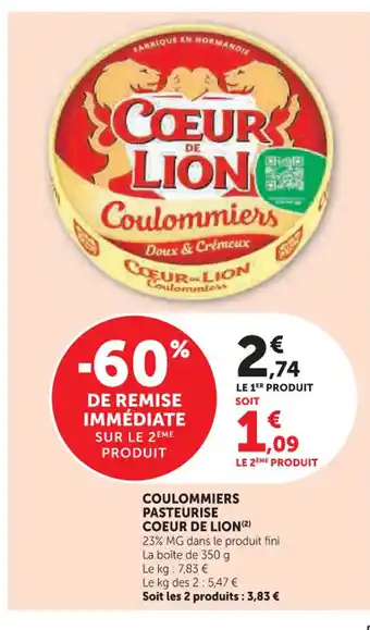 Actuellement en offre chez Super U : COEUR DE LION Coulommiers pasteurise ✅ Valable du 24-02 au 8-03.