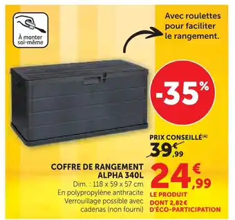 Actuellement en offre chez Super U : Coffre de rangement alpha 340l ✅ Valable du 3-03 au 15-03.