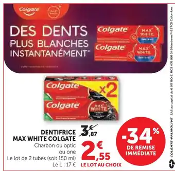 Actuellement en offre chez Super U : Colgate dentifrice max white ✅ Valable du 17-02 au 1-03.