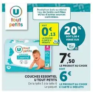 Couches Essentiel U Tout Petits offres et promotions en ligne chez Super U