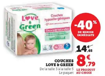 En plus de l'offre Couches love & green, Super U propose une large gamme de produits. Consultez le Catalogue Super U hebdomadaire pour découvrir les meilleures offres et promotions. En plus de Couches love & green, il y a aussi : LOVE & GREEN Couches, LOVE & GREEN Couches & Love & green couches hypoallergéniques.