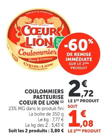 Actuellement en offre chez Super U : COULOMMIERS PASTEURISE COEUR DE LION ✅ Valable du 28-04 au 10-05.