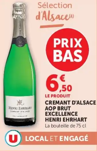 Actuellement en offre chez Super U : Cremant d'alsace aop brut excellence henri ehrhart ✅ Valable du 5-05 au 10-05.