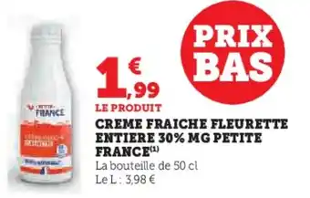 Actuellement en offre chez Super U : Creme fraiche fleurette entiere 30% mg petite france ✅ Valable du 9-01 au 18-01.
