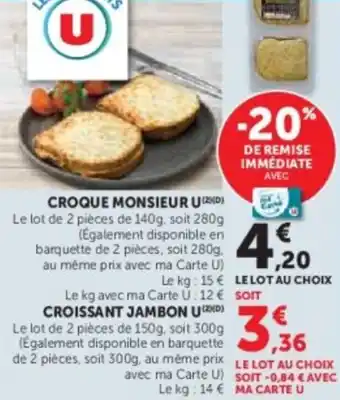 Actuellement en offre chez Super U : Croque monsieur u ✅ Valable du 17-03 au 29-03.