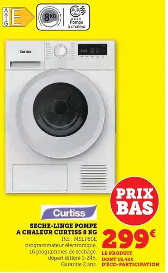 Actuellement en offre chez Super U : CURTISS Seche-linge pompe a chaleur ✅ Valable du 20-01 au 8-02.