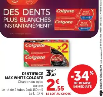 Actuellement en offre chez Super U : Dentifrice max white colgate ✅ Valable du 17-02 au 1-03.
